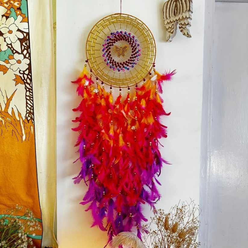 ✔ Materials – Golden ring, cobweb work, feathers, metal charms, capiz shells