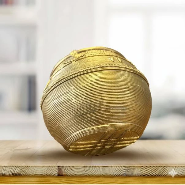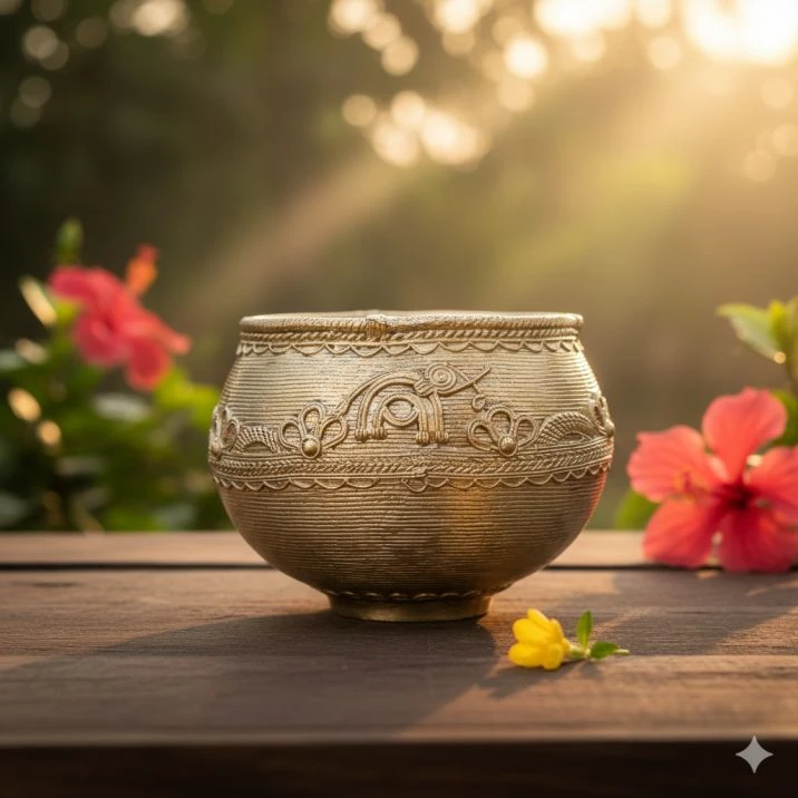 Bring home the rustic elegance of traditional Dhokra Tribal Art with this beautifully handcrafted Brass Mana Bowl. Symbolizing heritage craftsmanship, this decorative vessel is made using the ancient lost-wax casting technique, giving it rich texture and intricate tribal motifs.