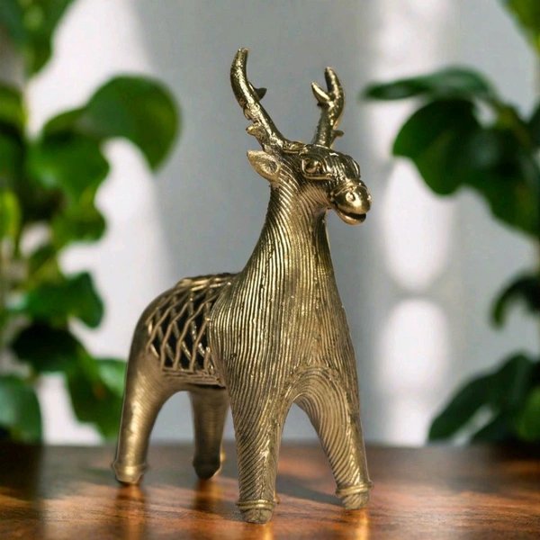 Add a touch of timeless elegance to your living space with the Dhokra Crafts Home Decor - Deer. Handcrafted with precision and passion, this exquisite piece embodies the rich heritage of Dhokra art, a centuries-old craft rooted in intricate metalwork and cultural significance. Perfect for those who appreciate artisanal craftsmanship and unique decor, this decorative deer is sure to become the centerpiece of any room.