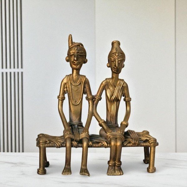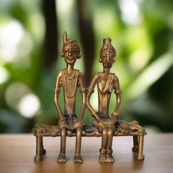 Celebrate the timeless charm of traditional artistry with the Dhokra Crafts Home Decor - Tribal Couple Sitting On Cot. This exquisite piece is a testament to India’s rich cultural heritage, handcrafted using the ancient Dhokra technique that has been passed down through generations. Perfect for adding a touch of authenticity and warmth to your living space, this decor item is more than just an ornament—it’s a story waiting to be told.