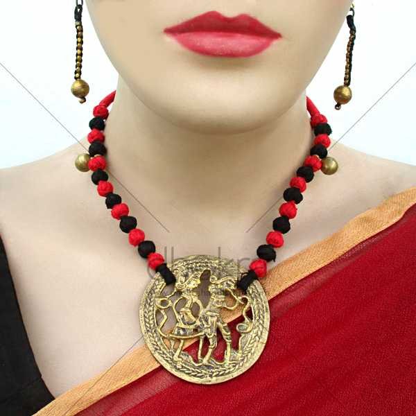Eye-Catching Pendant: Bold Dhokra locket as the centerpiece, making a strong fashion statement.