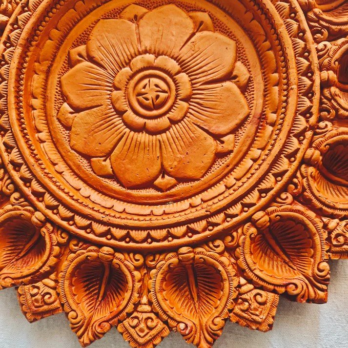 Illuminate your festive celebrations with the Diya Collection: 14 Artisan Diyas from Mukherjee Handicrafts. This exquisite set features 14 handcrafted terracotta diyas, each meticulously designed to add a touch of traditional elegance to your Diwali and puja rituals. The intricate craftsmanship and warm glow of these diyas create an enchanting ambiance, making them perfect for enhancing your home decor during the festive season.
