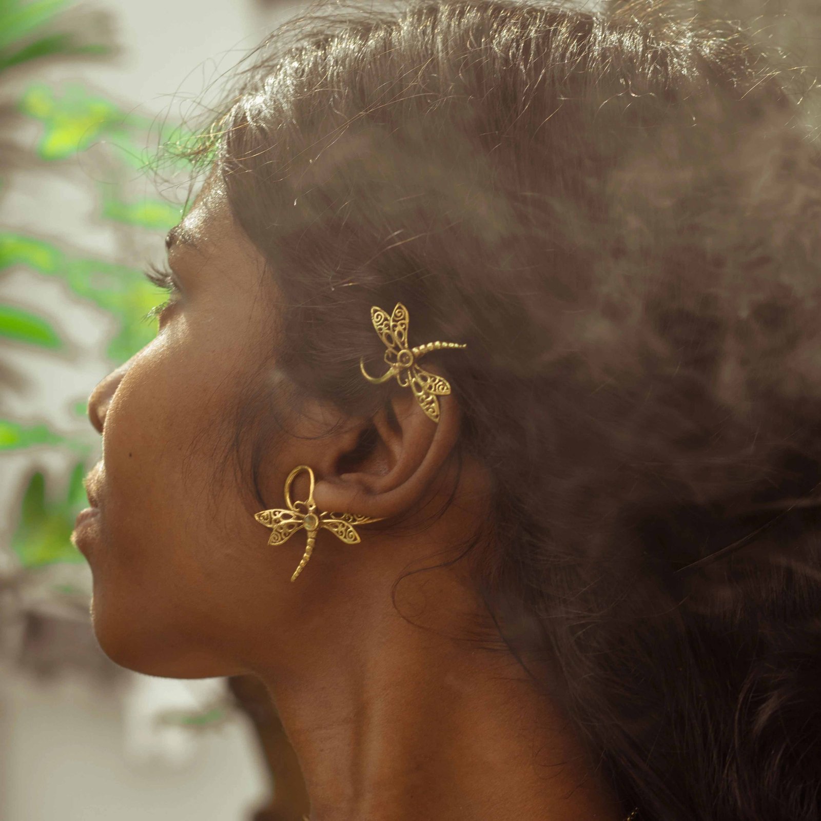 Embrace transformation and adaptability with the Dragonfly Ear Cuff, inspired by the dragonfly's symbolism of change and self-realization.
