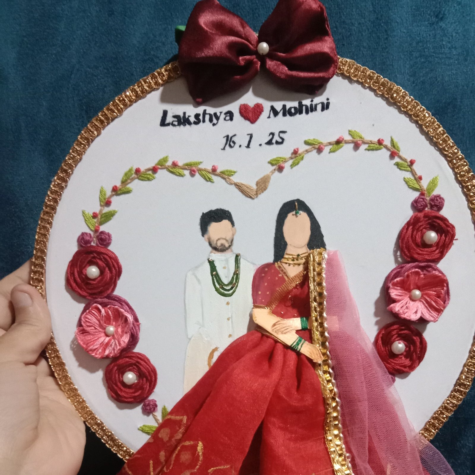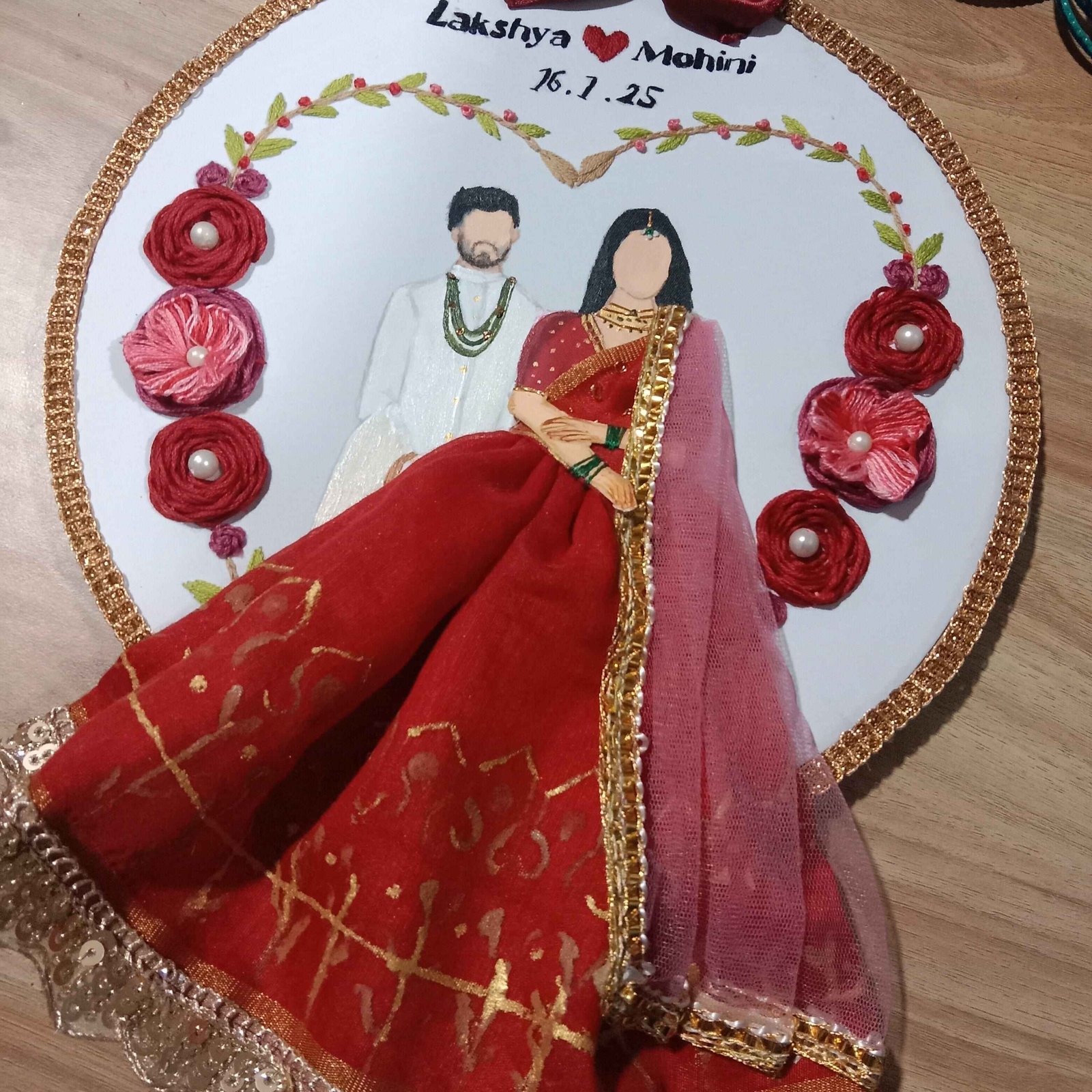 Wedding date : a forever reminder of the special day, hand stitched with intricate precised floral embroidery