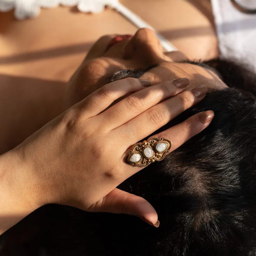 Available in ring size 5–6, featuring a real moonstone that adds a natural, mystical touch to your look.