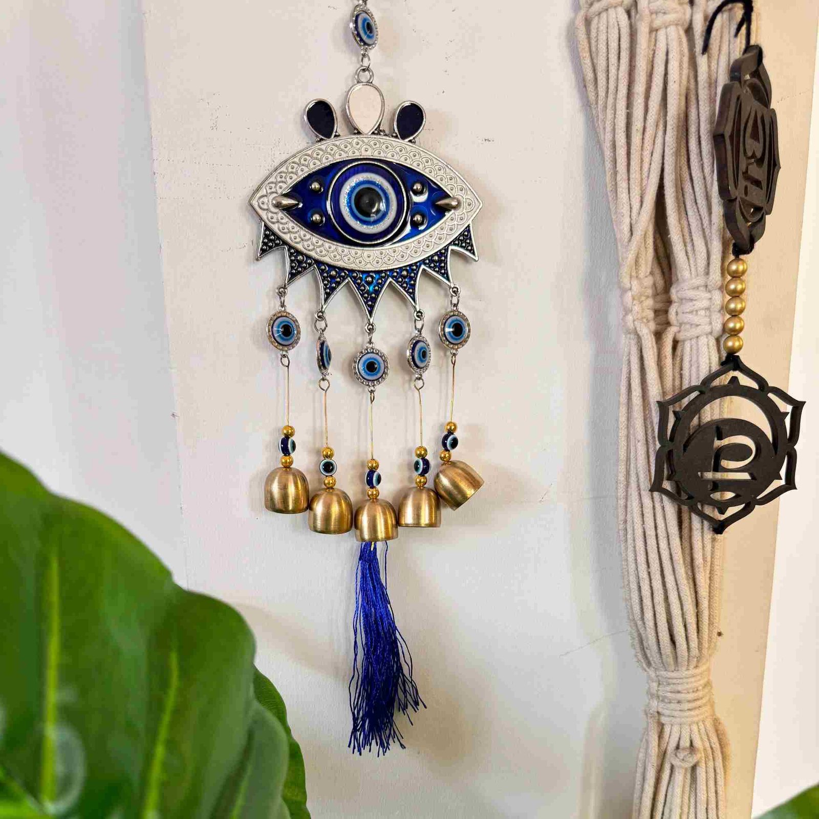Bring positivity and protection into your space with the Evil Eyed Windchime. Designed as a feng shui charm, it works perfectly as a car accessory, door knob hanger, or window décor. The evil eye symbol is believed to ward off negativity while attracting good energy.