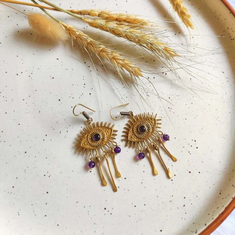 Protective Design: The Eye of Protection Earrings feature the iconic evil eye motif, believed to ward off negative energy and bring good luck.