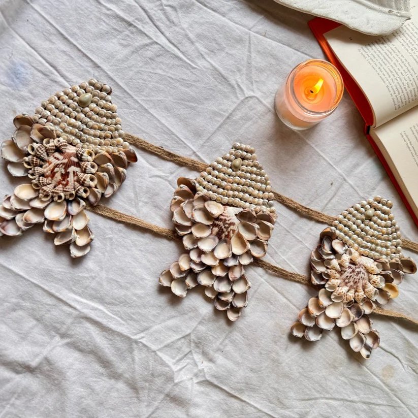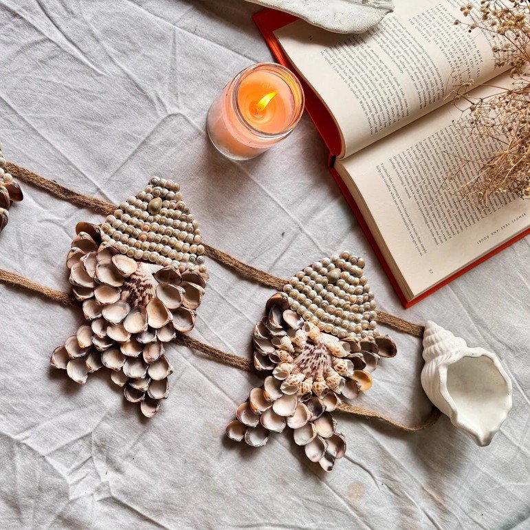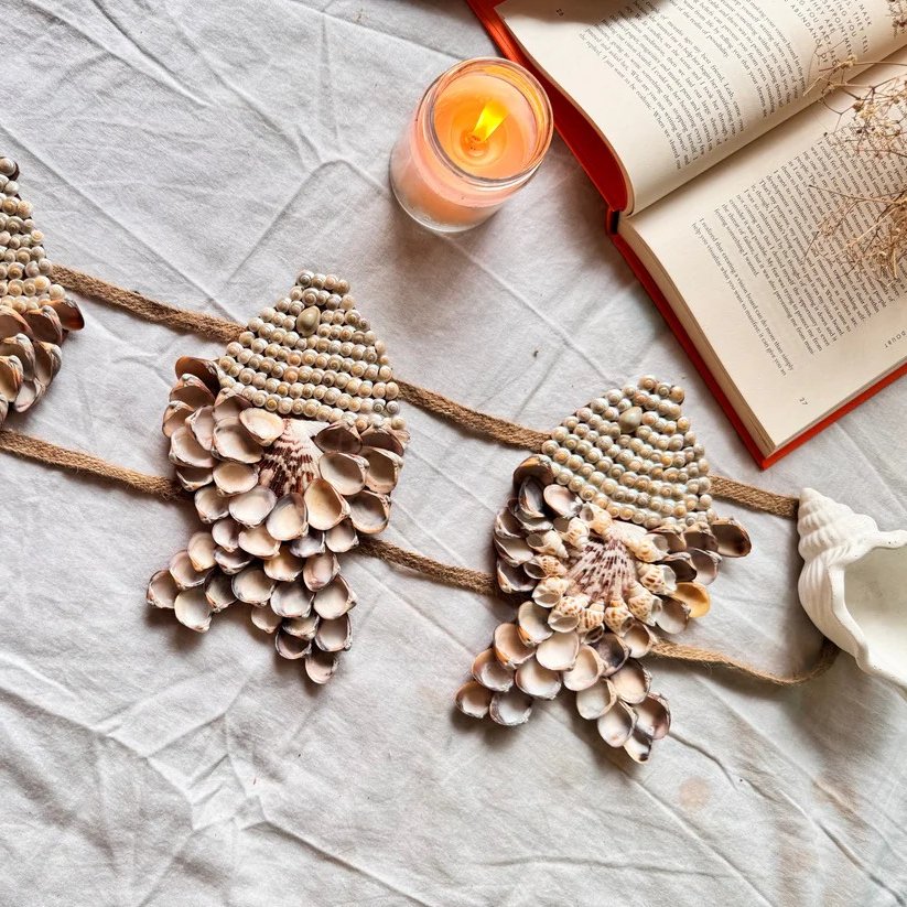 Features an adorable fish family crafted from natural shells, symbolizing harmony, togetherness, and prosperity.