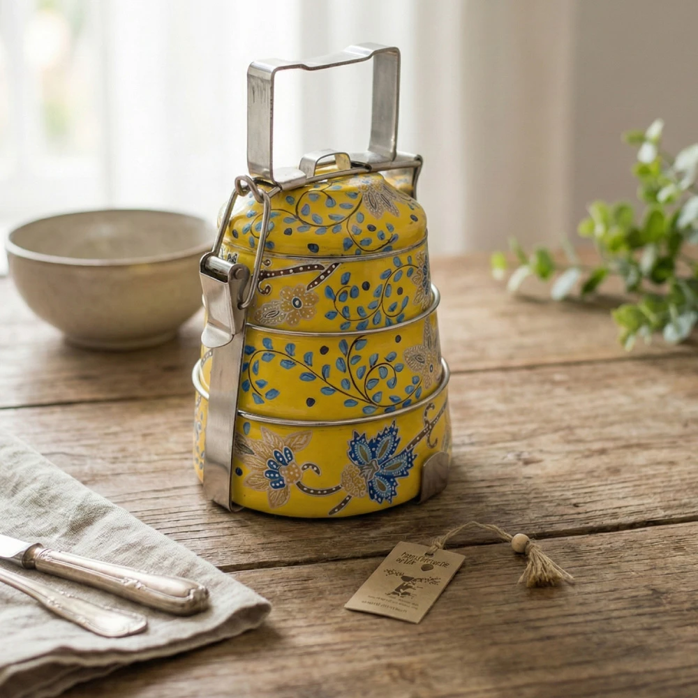 Elevate your everyday dining experience with our exquisite Hand-Painted Tiffin collection. Each piece is a canvas of artistic expression, meticulously hand-painted by skilled artisans. Our Hand-Painted Tiffins not only add a touch of vibrant elegance to your meals but also celebrate the rich heritage of traditional artistry. Crafted with care and precision, these unique pieces are both functional and aesthetically pleasing, making them a perfect blend of tradition and modernity. Explore our collection and bring a burst of colors and creativity to your dining rituals.