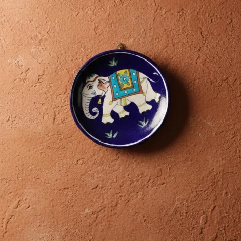Celebrate the majesty of Indian tradition with this Handcrafted Blue Pottery Plate featuring a royal elephant motif, a symbol of strength, wisdom, and royalty. Carefully hand-painted by skilled artisans of Jaipur, this plate reflects the authentic charm of Rajasthani folk art.