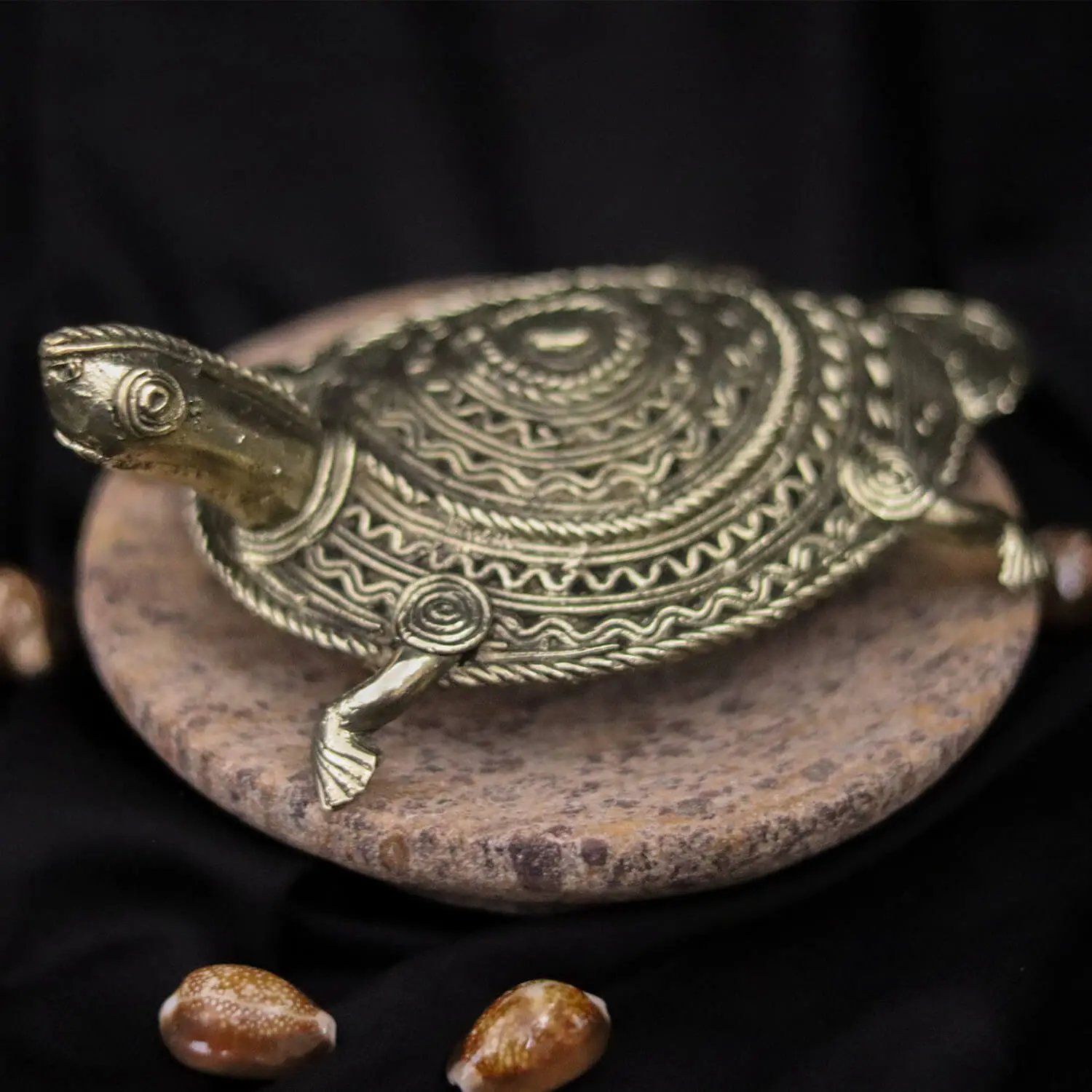 Intricate & Detailed Craftsmanship: Admire the delicate and elaborate spiral and geometric patterns etched into the tortoise's shell. These traditional motifs are a testament to the thousands of years of artistic heritage preserved in the Dhokra art form.