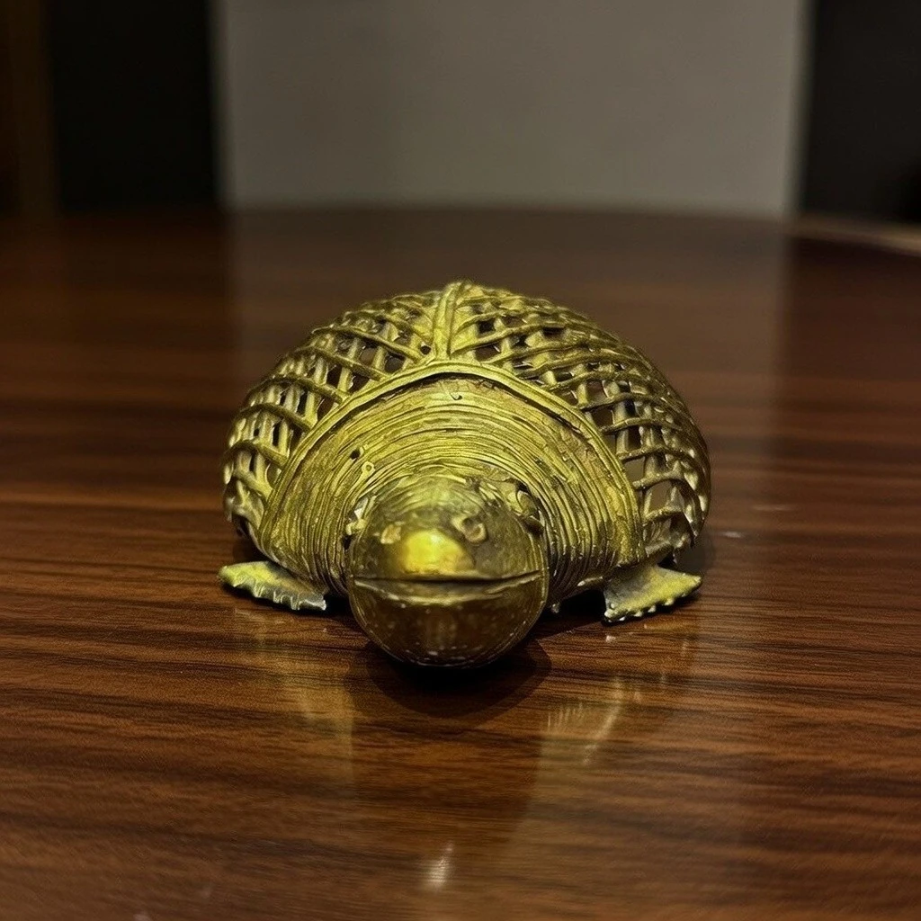 Bring home the timeless charm of Indian tribal art with this Handcrafted Dhokra Jaala Tortoise. Made using the traditional lost-wax (Dhokra) casting technique, this exquisite tortoise showcases intricate jaali (lattice) detailing that reflects skilled craftsmanship passed down through generations.