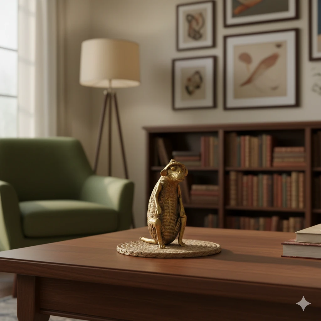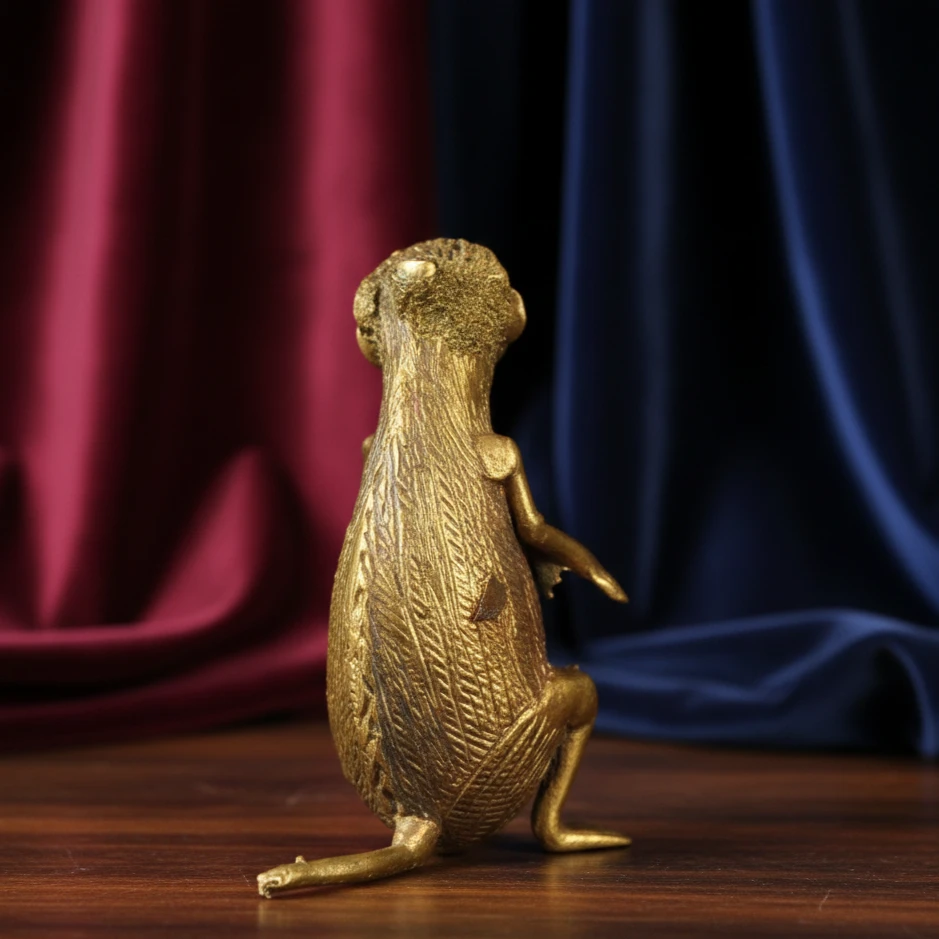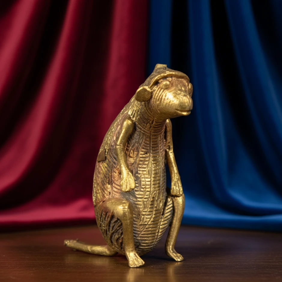Add a playful yet cultural touch to your décor with this Handcrafted Dhokra Monkey Showpiece, crafted by skilled artisans using the traditional lost-wax casting technique. Featuring expressive detailing and a rustic antique brass finish, this monkey figurine represents intelligence, curiosity, and liveliness in tribal folklore. Its compact form and intricate texture make it an eye-catching accent for shelves, desks, living spaces, or as a unique ethnic gift.