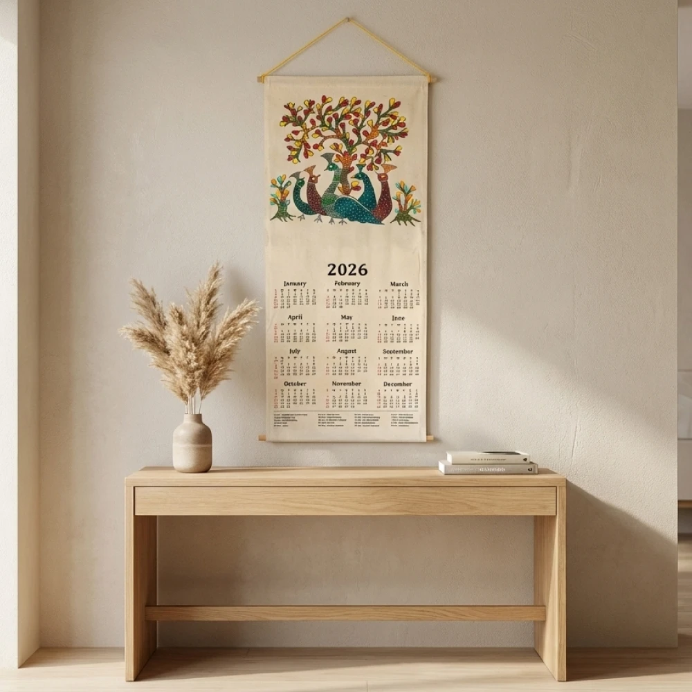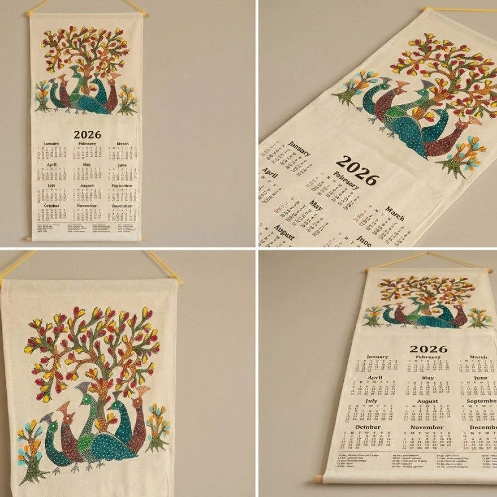 Celebrate the new year with culture and creativity through this Handcrafted Fabric Wall Calendar 2026 – Traditional Indian Folk Art.