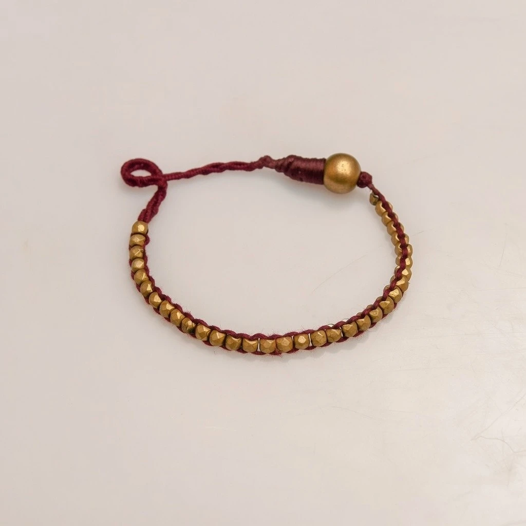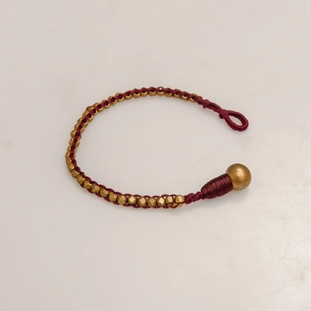 Add a touch of timeless tribal elegance to your style with this handcrafted Maroon Dhokra Bracelet. Skillfully made using traditional Dhokra metal beads and durable maroon thread, this bracelet reflects Indiaβs rich artisanal heritage. The minimalist yet ethnic design makes it perfect for everyday wear as well as festive and cultural occasions. Lightweight, comfortable, and adjustable, it blends tradition with contemporary fashion effortlessly.