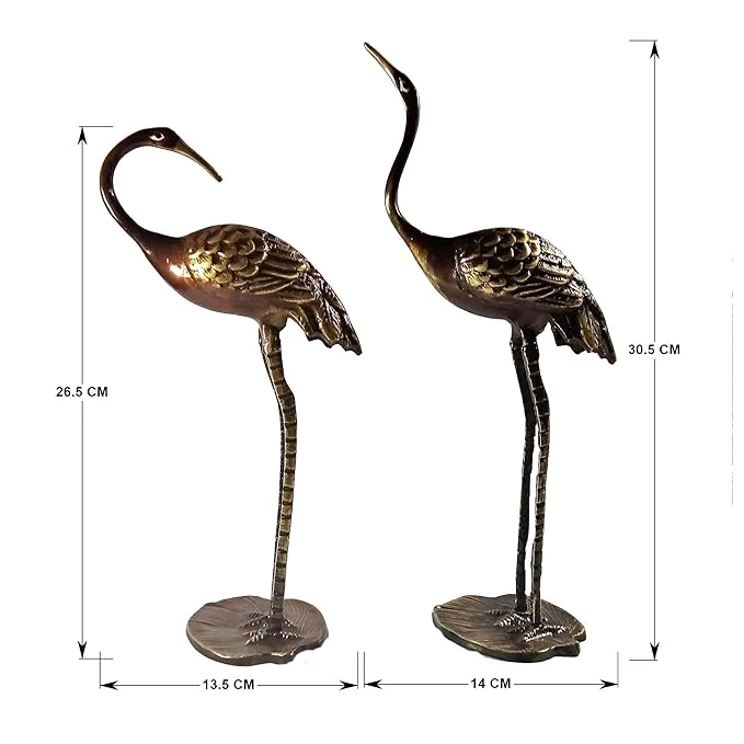 Made by skilled artisans from Moradabad—India’s renowned hub for brass and metal handicrafts—this crane pair reflects the richness of Indian craftsmanship and adds a sophisticated touch to any décor setting.