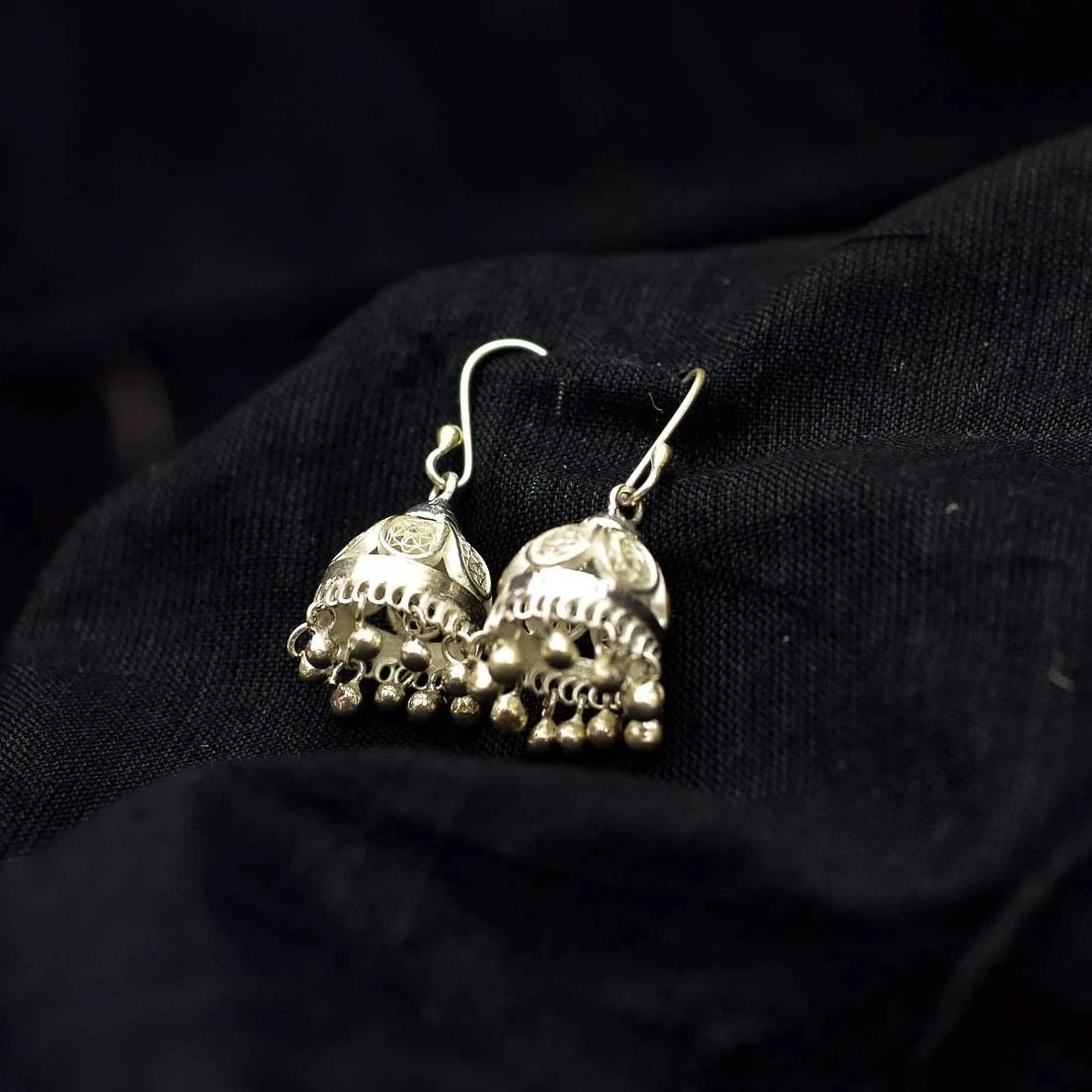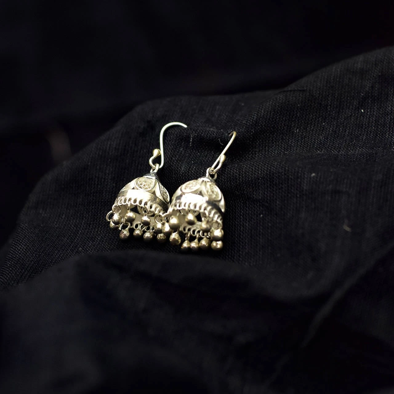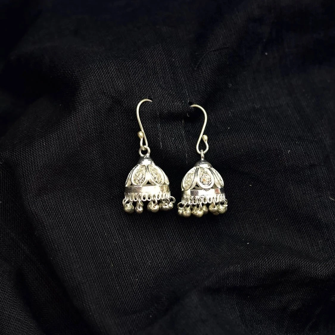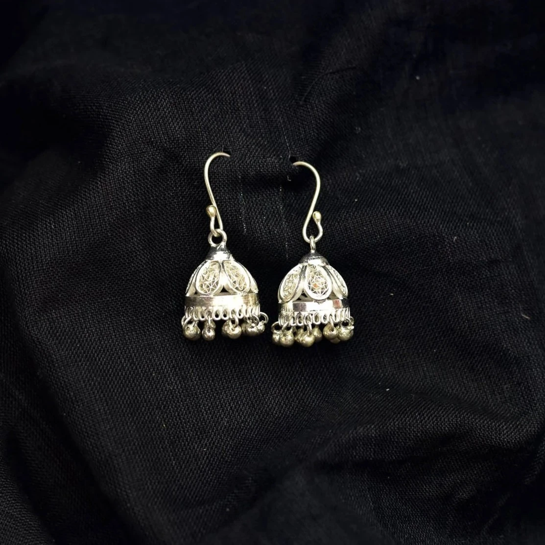 Handcrafted traditional oxidized silver jhumka earrings