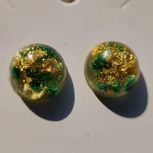 These Handcrafted Resin Stud Earrings, designed with a beautiful blend of vibrant colors and embedded gold flakes.
