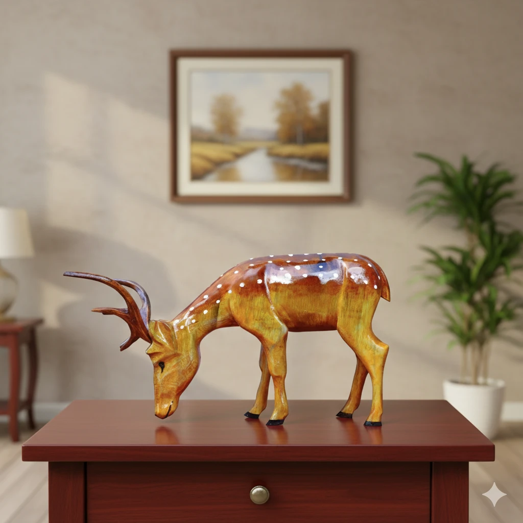 A wonderful blend of traditional craftsmanship and artistic expression, this wooden deer showpiece is ideal for home styling as well as thoughtful gifting.