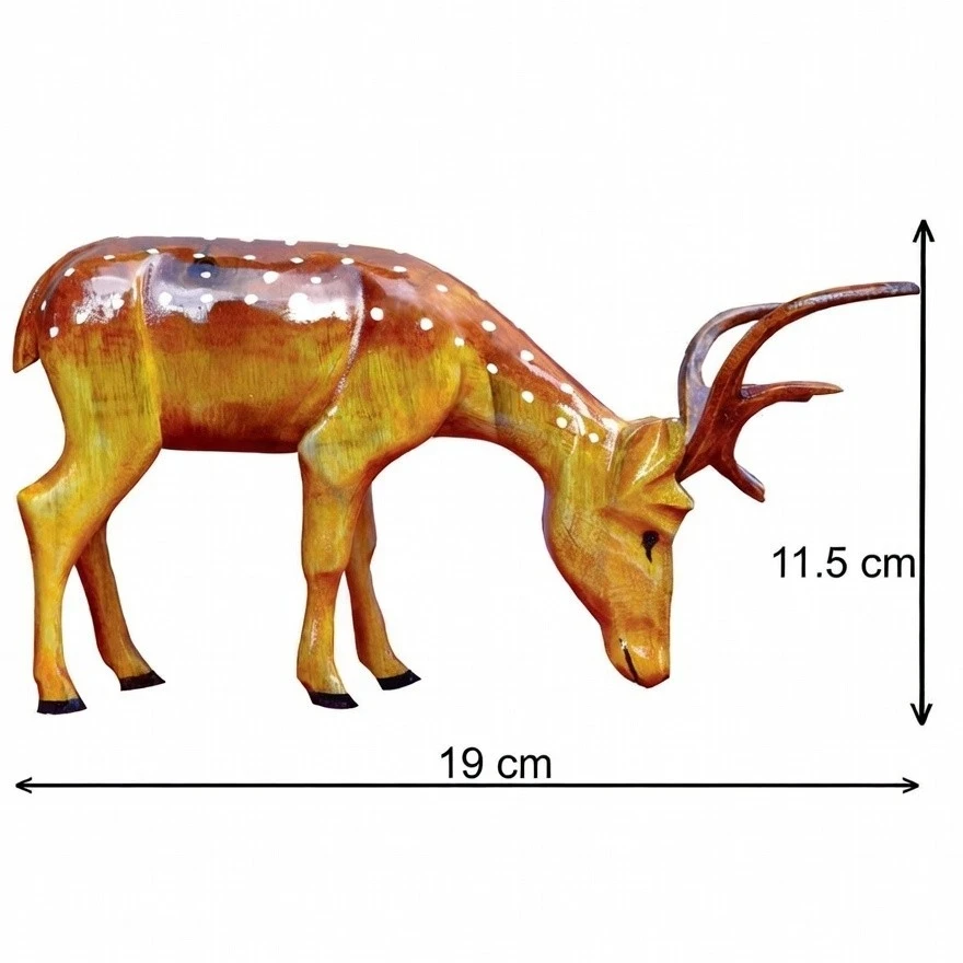 Bring the serene beauty of nature into your home with this Handcrafted Wooden Grazing Deer Showpiece. Skillfully carved by experienced artisans, this décor piece captures a graceful deer in a natural grazing posture, highlighted with fine detailing and subtle hand-painted spots.