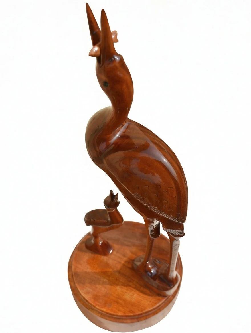 100% hand-carved wooden heron/crane showpiece