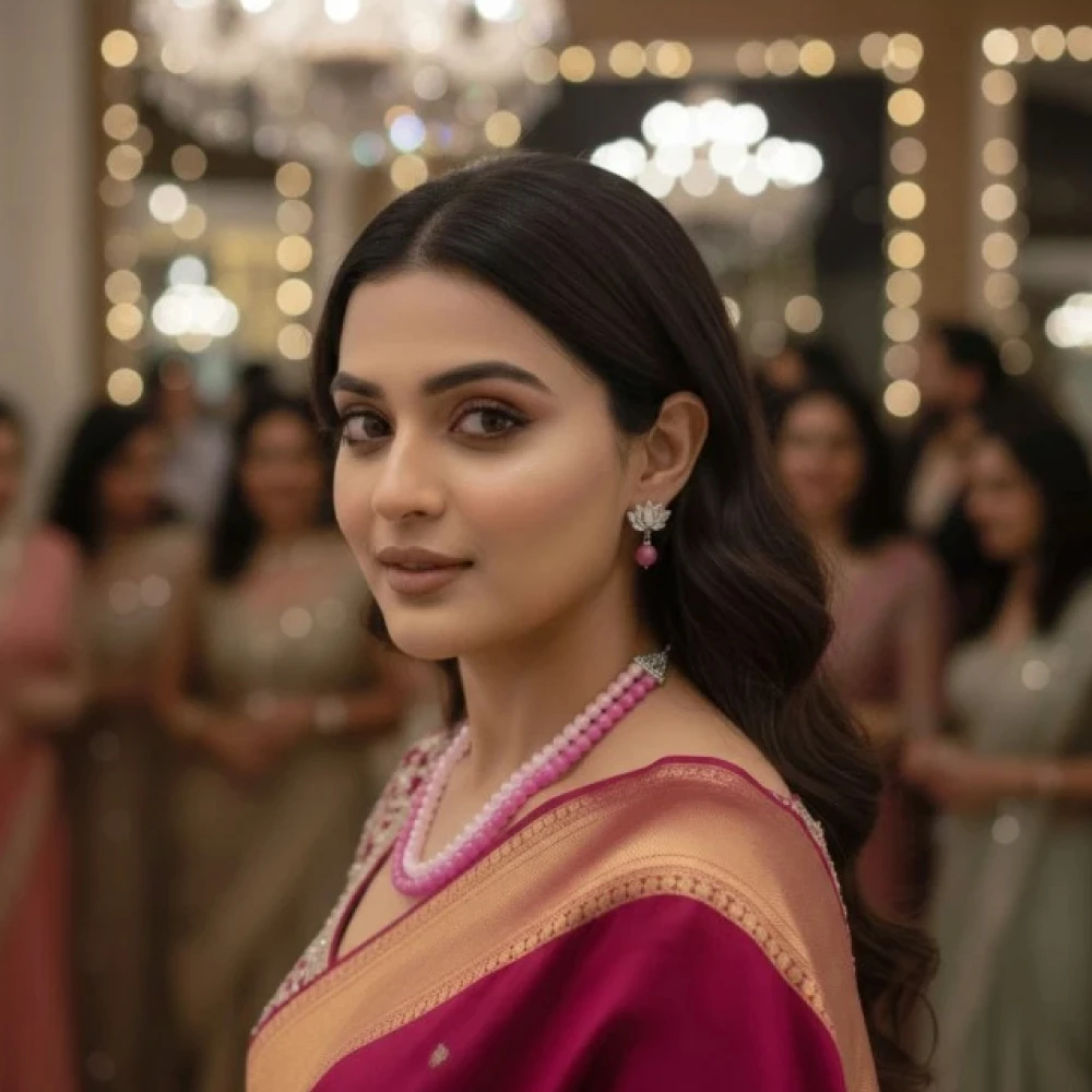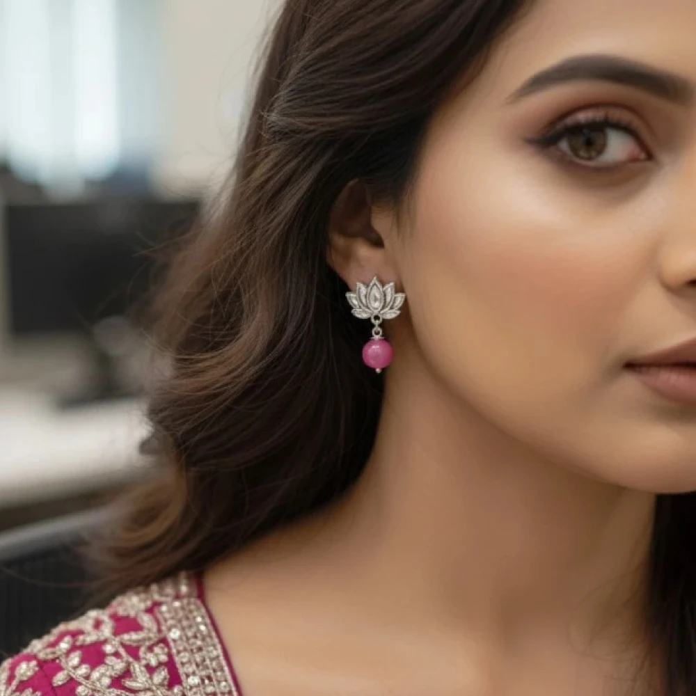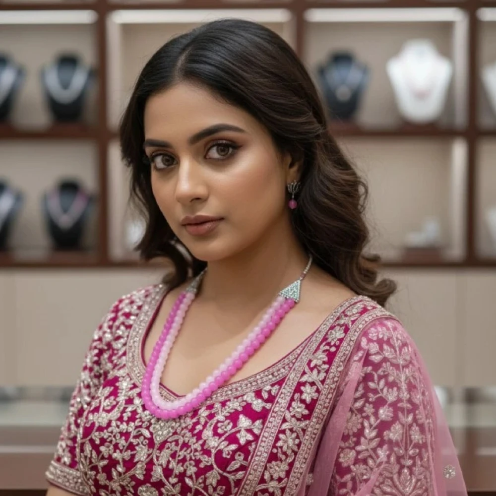 Elevate your ethnic and contemporary wardrobe with this exquisitely handcrafted pink beaded jewellery set. Designed for the modern woman who values both style and comfort, this set features vibrant pink beads meticulously strung into a premium double-layer necklace with matching lotus-inspired earrings.