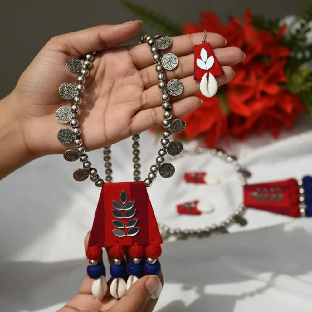 Celebrate artistry and elegance with this stunning Handcrafted Red Fabric Jewelry Set. Designed for the modern woman who appreciates tradition, this piece adds a vibrant splash of color to any outfit.