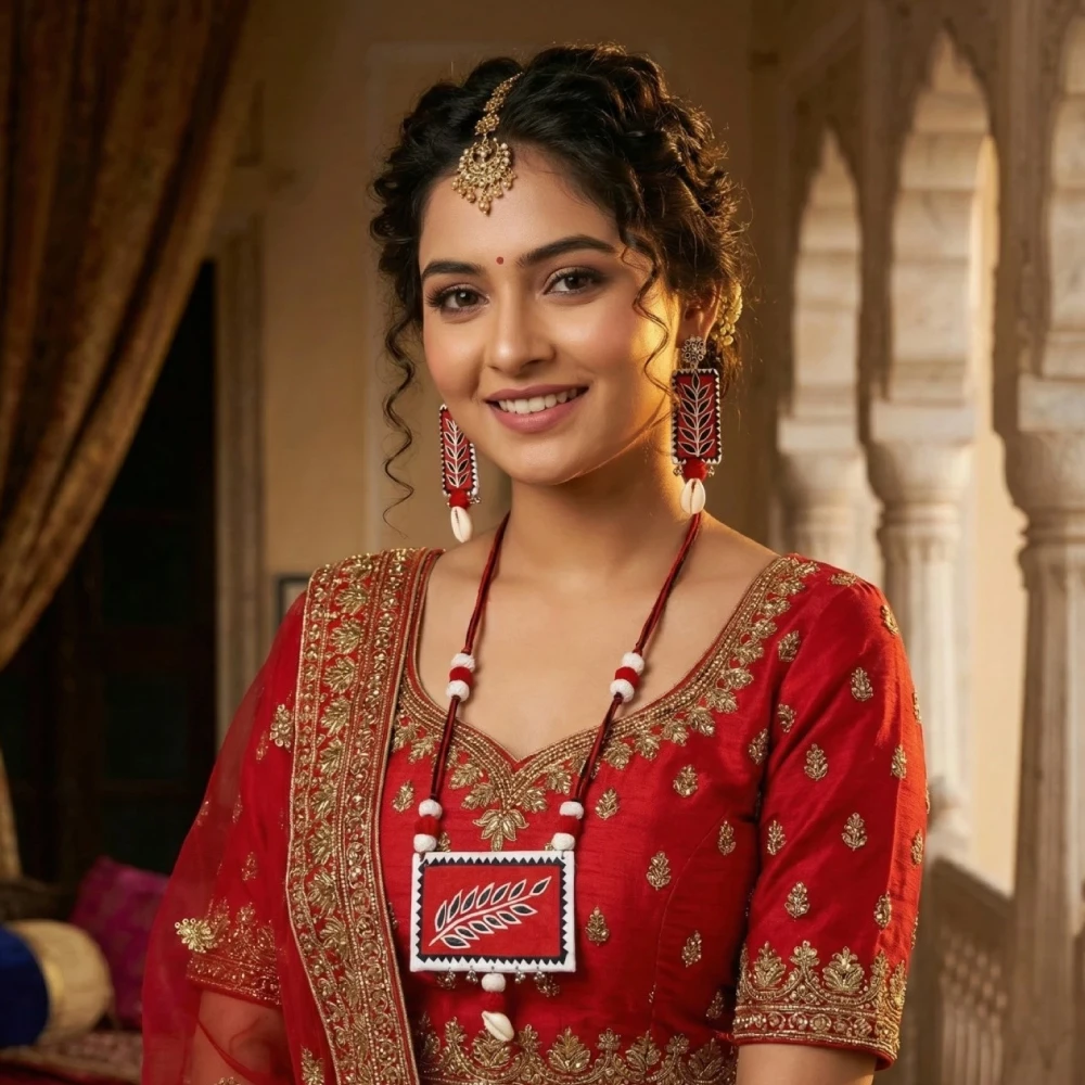 Style Tip: Pair this statement set with a solid black or white Kurti, a linen saree, or a boho-maxi dress to let the vibrant red color pop.