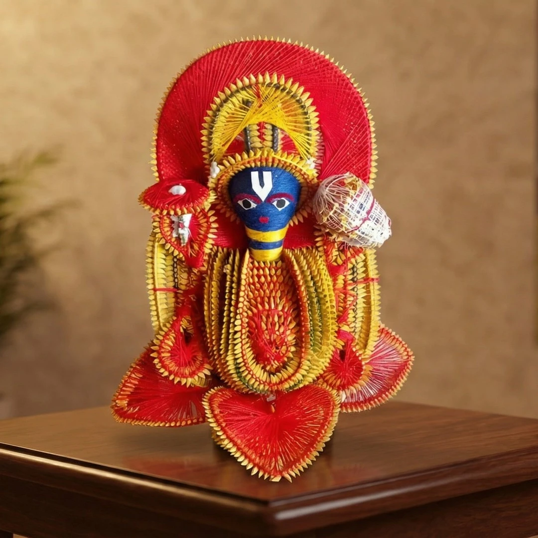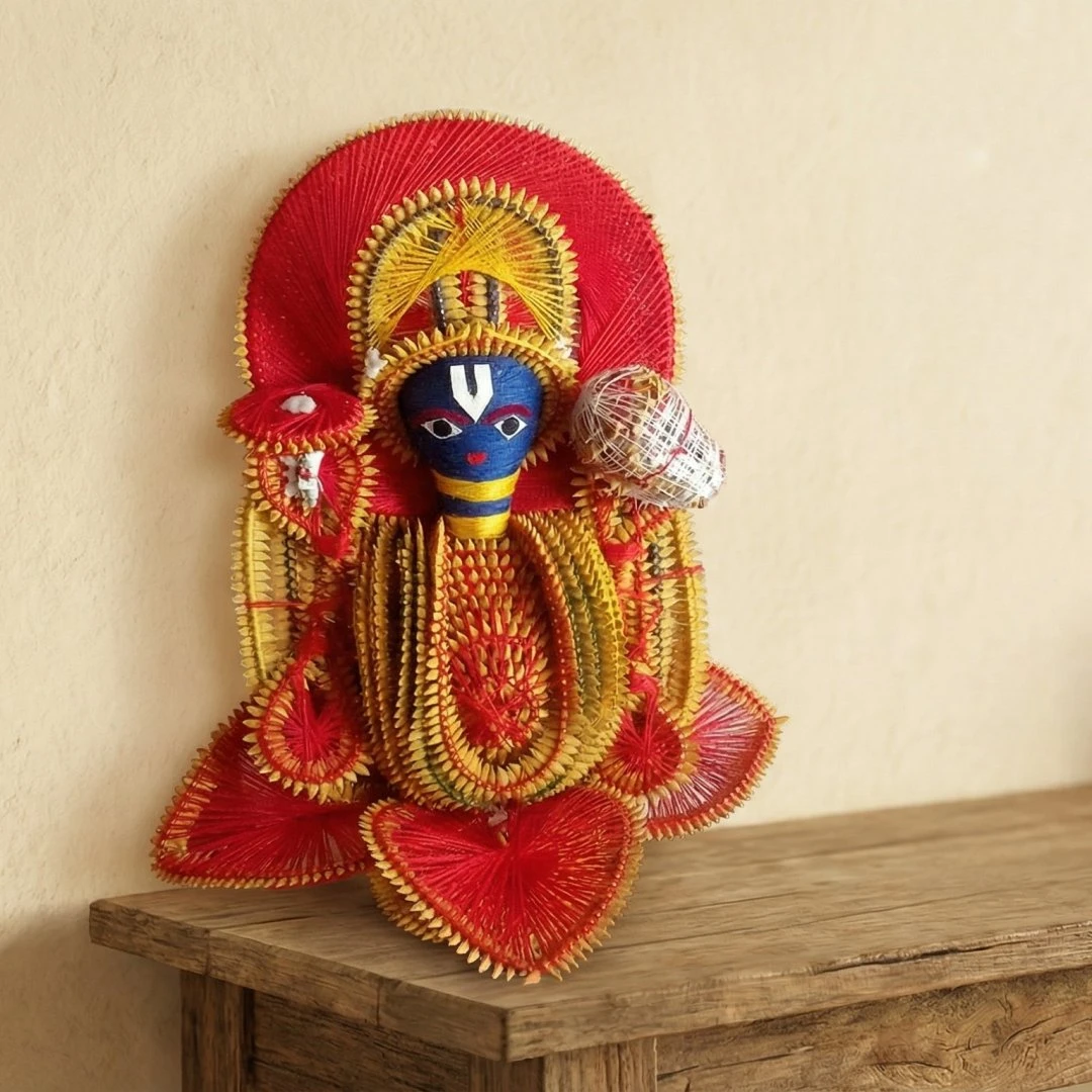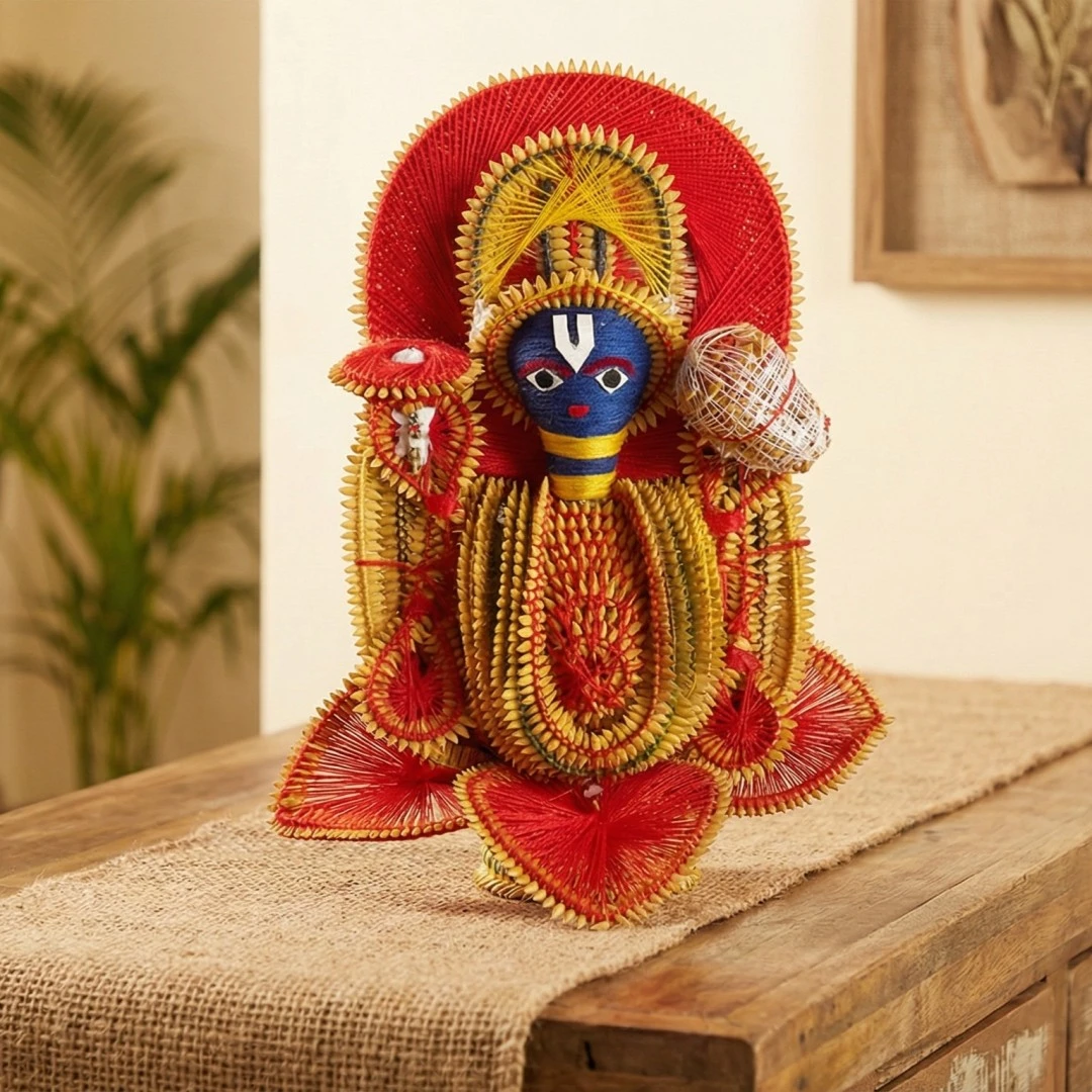 Bring divine grace and cultural elegance to your space with this Handmade Lord Vishnu Dhaana (Paddy) Craft Murti. Carefully crafted using natural paddy grains (dhaana) and fine threadwork, this idol beautifully depicts Lord Vishnu, the preserver of the universe and symbol of harmony and righteousness.