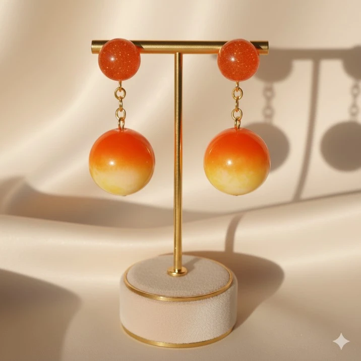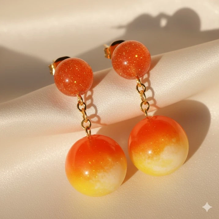 Brighten your look with these handcrafted ombre resin drop earrings, featuring a beautiful blend of warm orange and soft golden tones with subtle glitter specks. Designed with round resin studs and matching dangling drops, these earrings add a classy yet playful charm to any outfit.