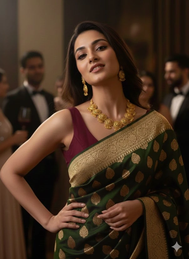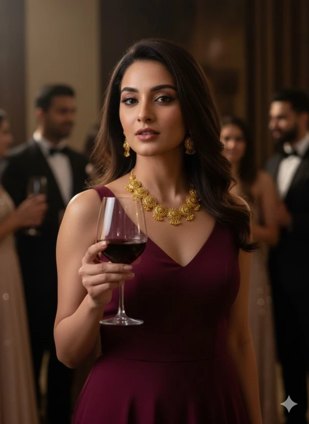Style Tip: Pair this set with a dark-toned Kanjeevaram or Banarasi saree to let the golden hues truly pop.