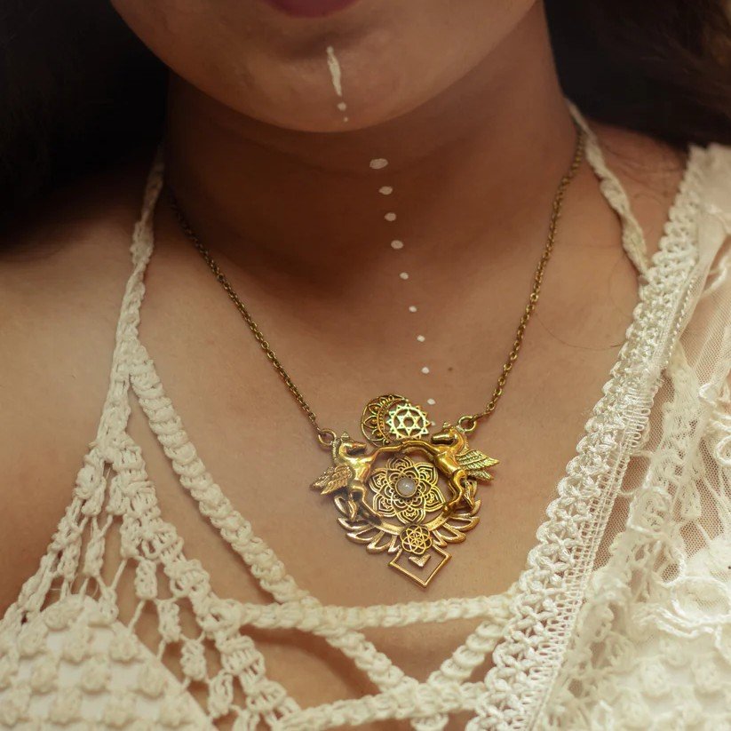 Made from brass, this necklace is a graceful accessory that enhances your natural charm without the bulk of heavier materials.