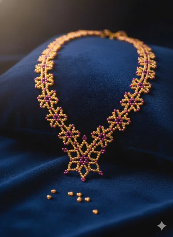 Rangoli) is a handcrafted decorative item made from shiny plastic pearl beads