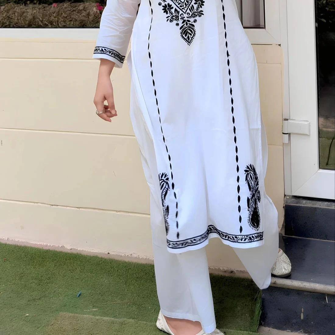 Pair with juttis or mojaris for a traditional finish, or block heels for a modern touch