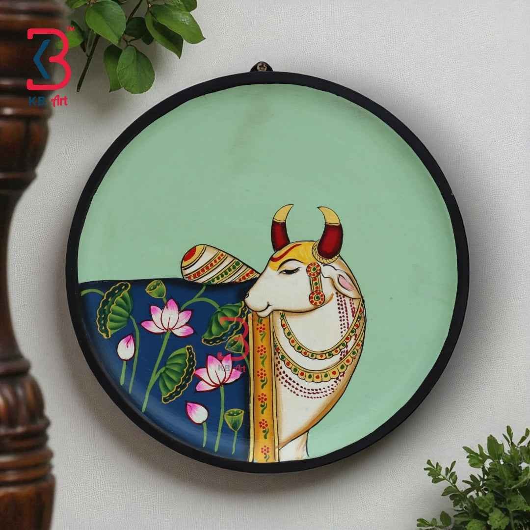 Theme: Devotional Art | Krishna Symbolism | Cow & Lotus Motifs