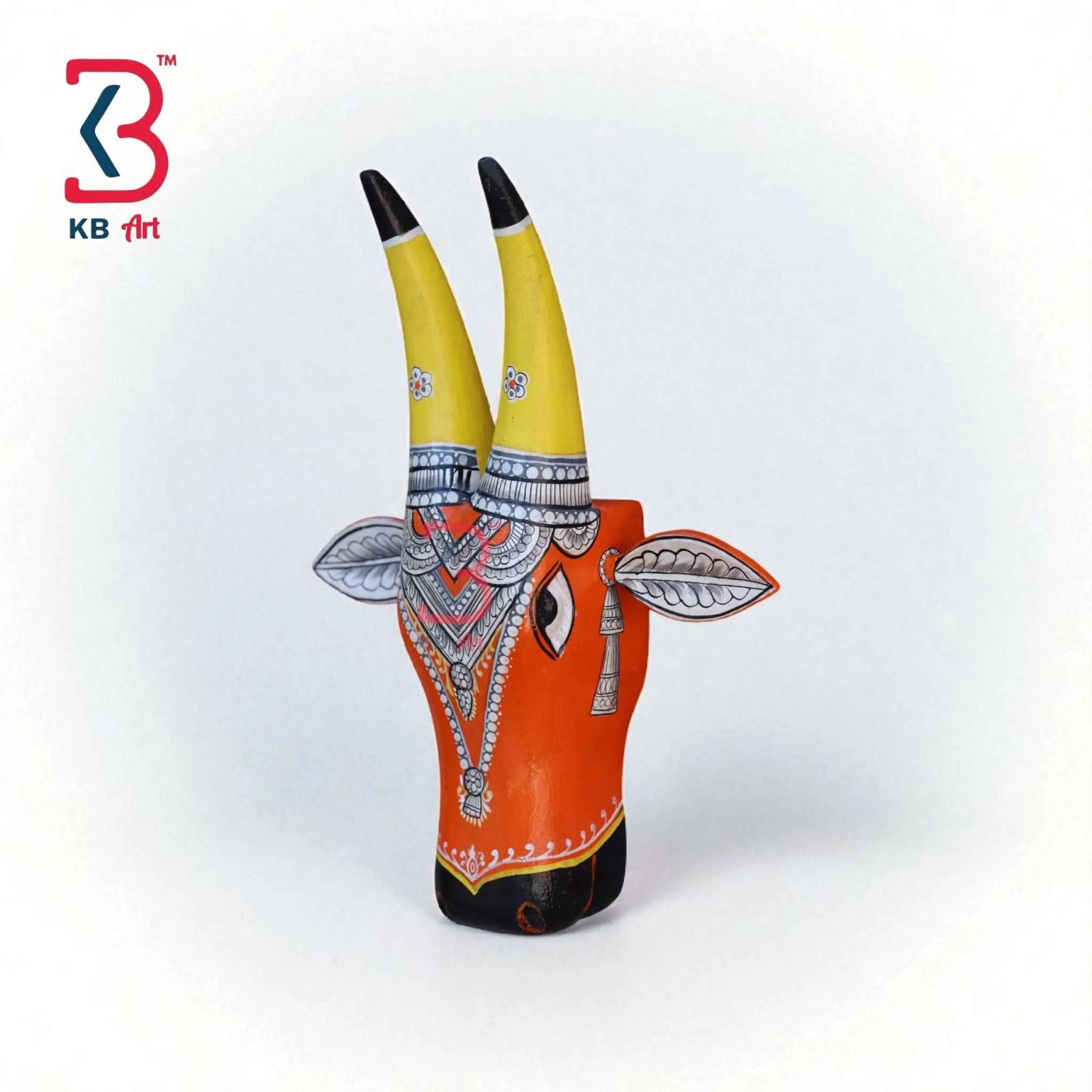 Infuse your walls with the charm of Indian folk art through the KB ART Handpainted Cow Head Wall Decor. This 11-inch wooden sculpture, inspired by the intricate lines of traditional Pattachitra painting, beautifully captures the essence of Rajasthan’s rich artistic legacy.