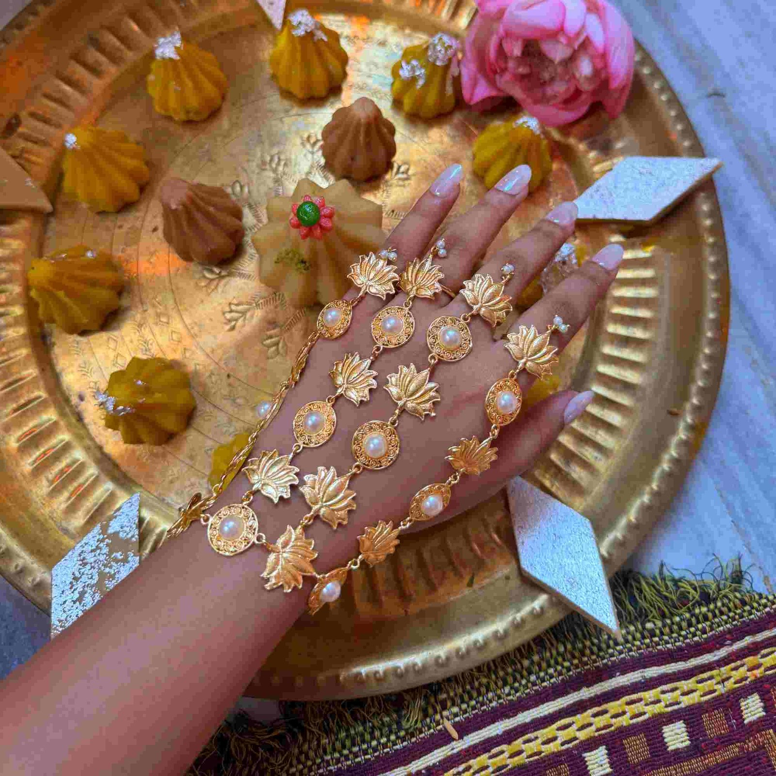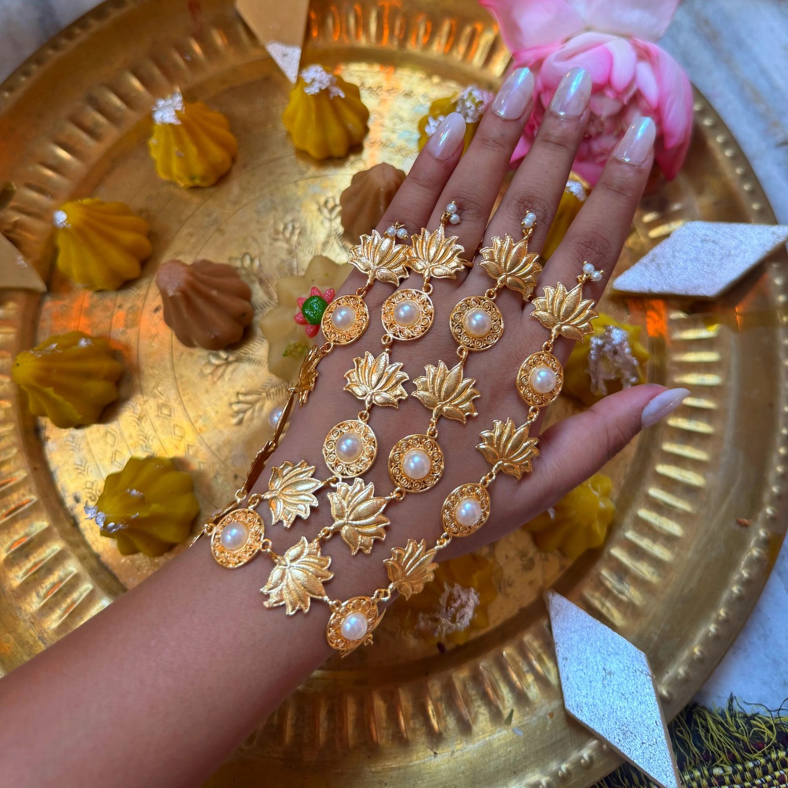 ✔ Chunky hathphool adorned with a lotus motif symbolizing purity, spiritual awakening, and beauty