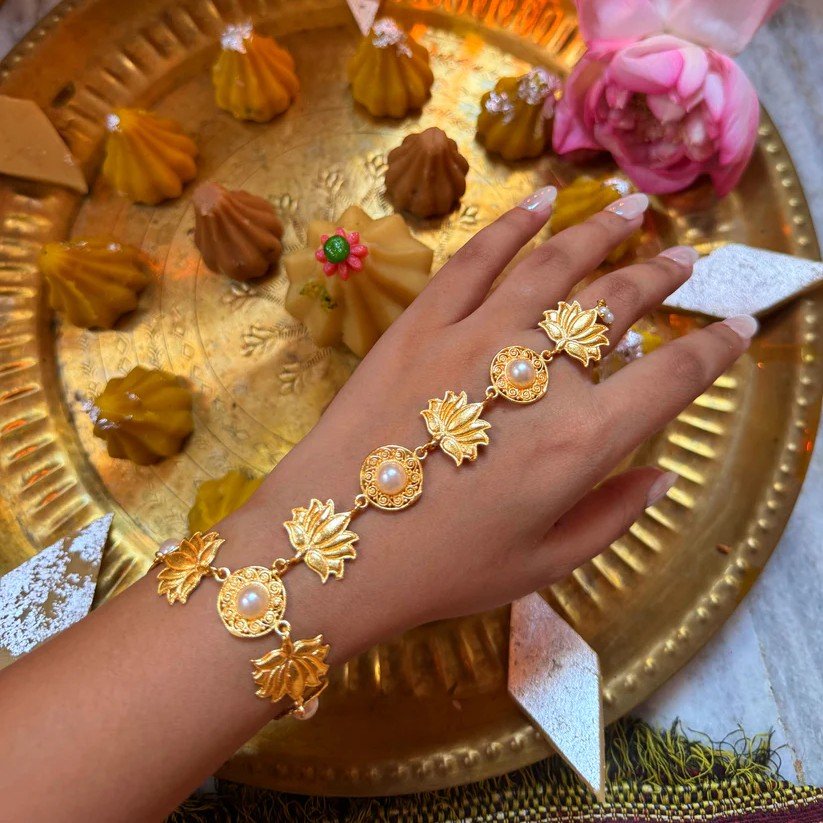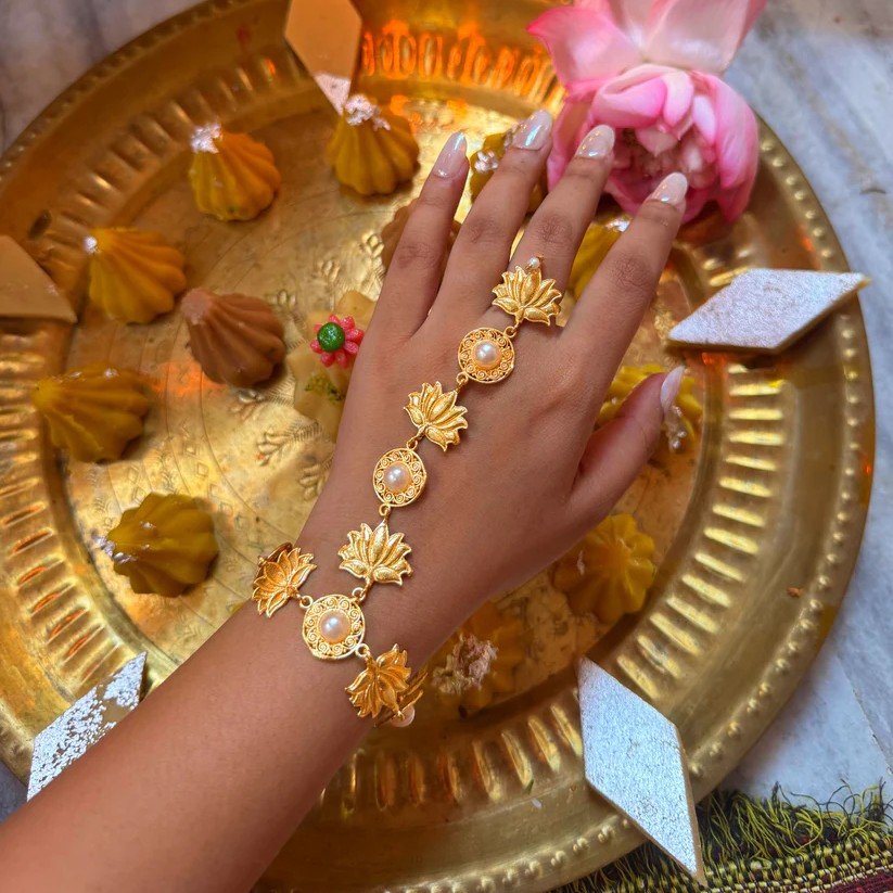 ✔ Elegant hathphool with lotus motif and stone embellishment