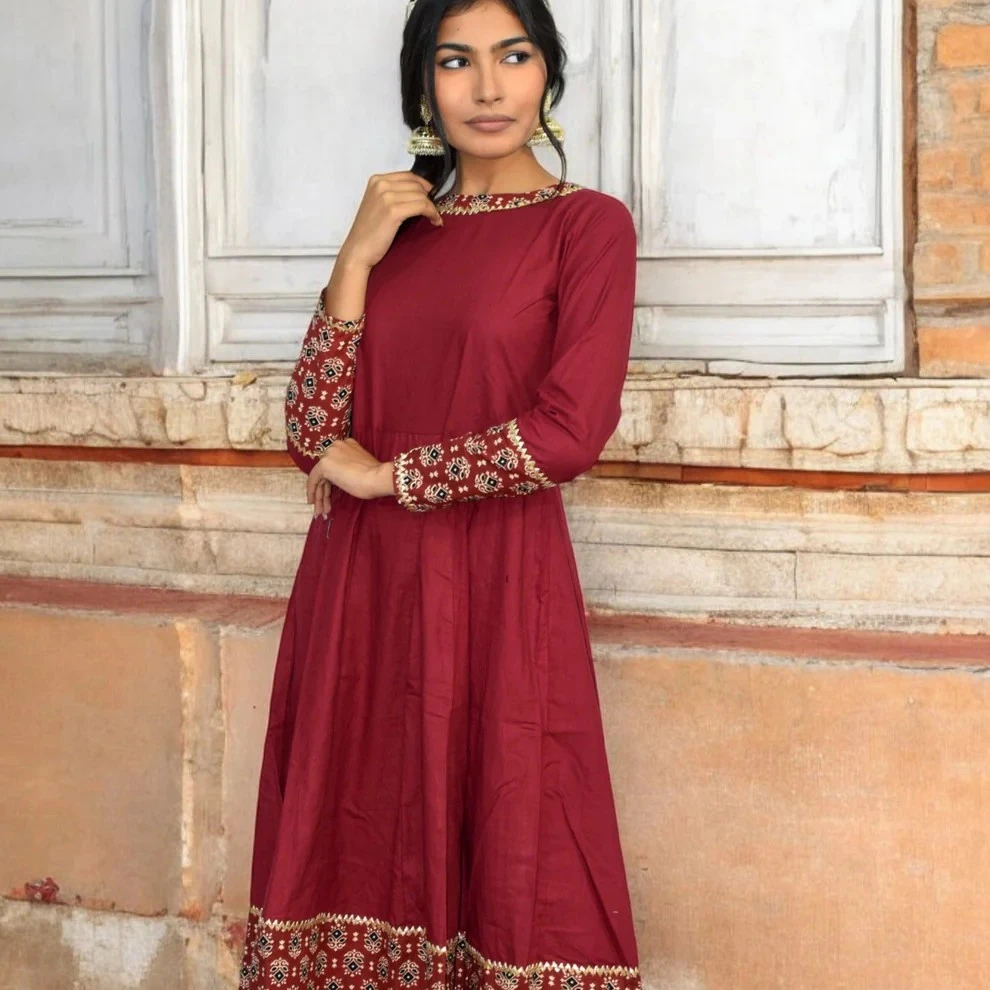 Floor-length Anarkali silhouette with graceful flare for a classic yet comfortable look.