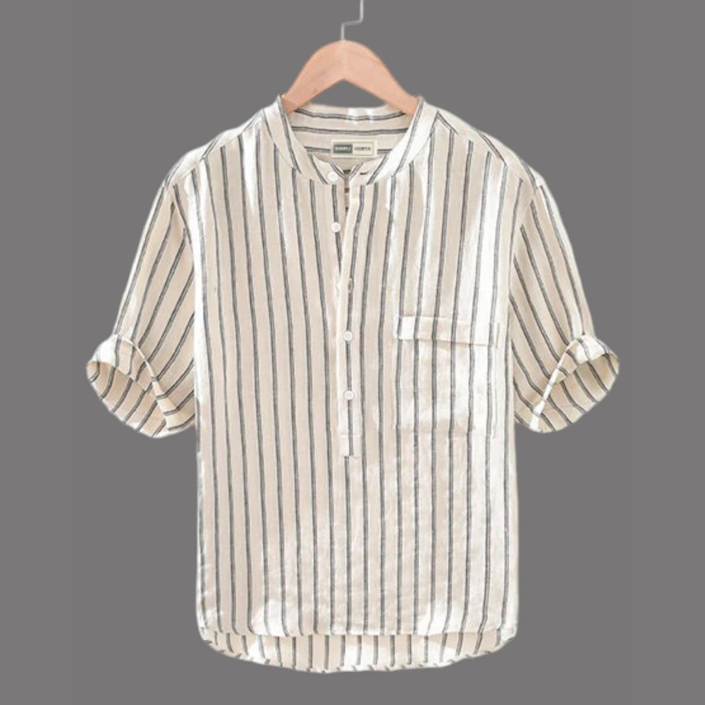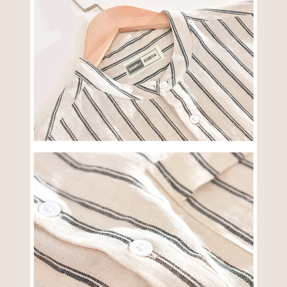Embrace understated elegance with this Khaki Kurta Shirt, crafted from lightweight, breathable cotton for everyday comfort. The muted khaki tone brings an earthy sophistication to your wardrobe, while the relaxed fit ensures ease of movement. Designed with a mandarin collar, short sleeves, and a button-up front, it combines classic style with modern usability. A functional chest pocket adds a touch of utility without disrupting the streamlined look. This versatile kurta is ideal for casual gatherings, semi-formal events, or everyday ethnic wear.