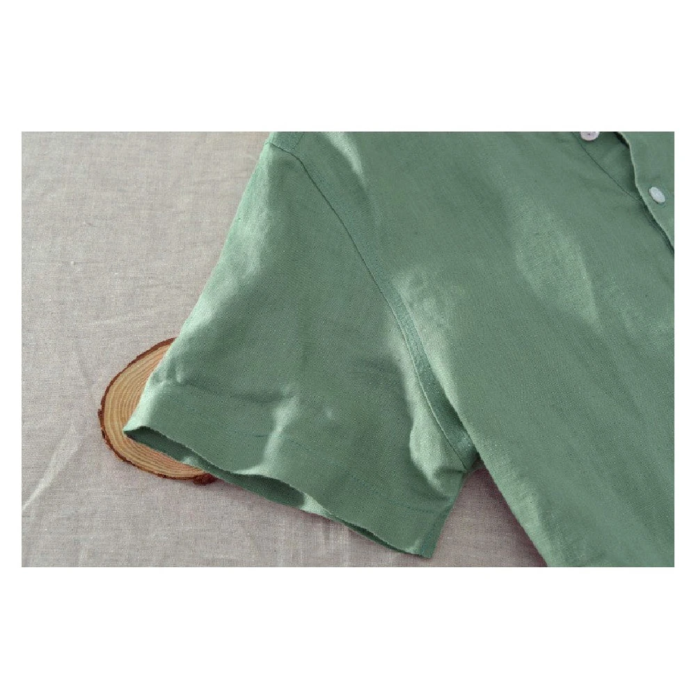 Elevate your casual style with this Green Cotton Kurta Shirt with Pocket. Crafted from soft, breathable organic cotton, this kurta-style shirt blends comfort and design. Featuring a mandarin collar, button-down front, half sleeves with roll-up tabs, and a hip-length cut, it is both versatile and stylish. The rich green shade and relaxed fit make it ideal for casual outings, weekend getaways, or comfortably smart everyday wear.