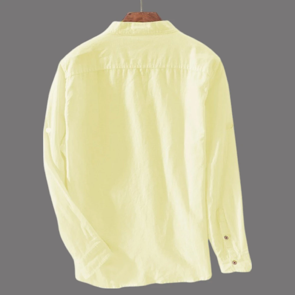 Refresh your wardrobe with this Men’s Pale Yellow Cotton Kurta Shirt. Crafted from breathable cotton, it offers all-day comfort in a soft pastel tone that's perfect for all seasons. The mandarin collar and wooden-style buttons add a minimal yet sophisticated flair to your everyday look.