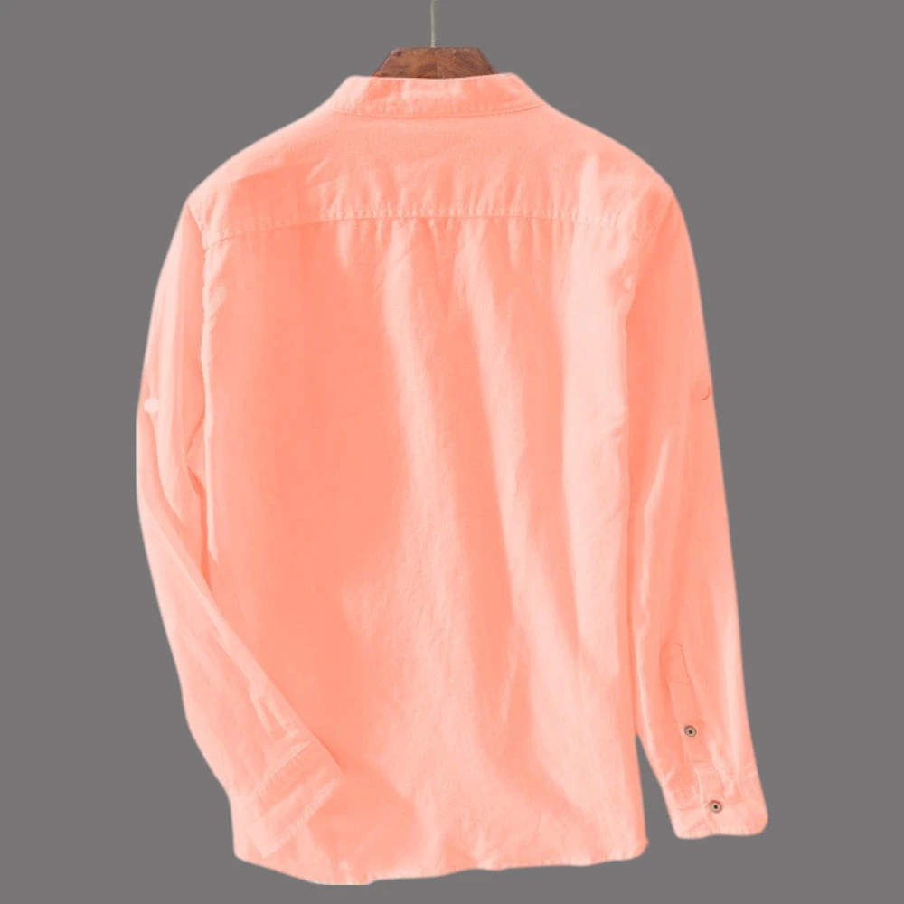 Indulge in relaxed style with this Peach Cotton Kurta Shirt. Made from 100% breathable soft cotton, it offers lightweight comfort all day long. The mandarin collar and roll-up sleeves add a modern touch, while the straight fit with minimal button detailing makes it perfect for casual outings, festive gatherings, or relaxed office settings.
