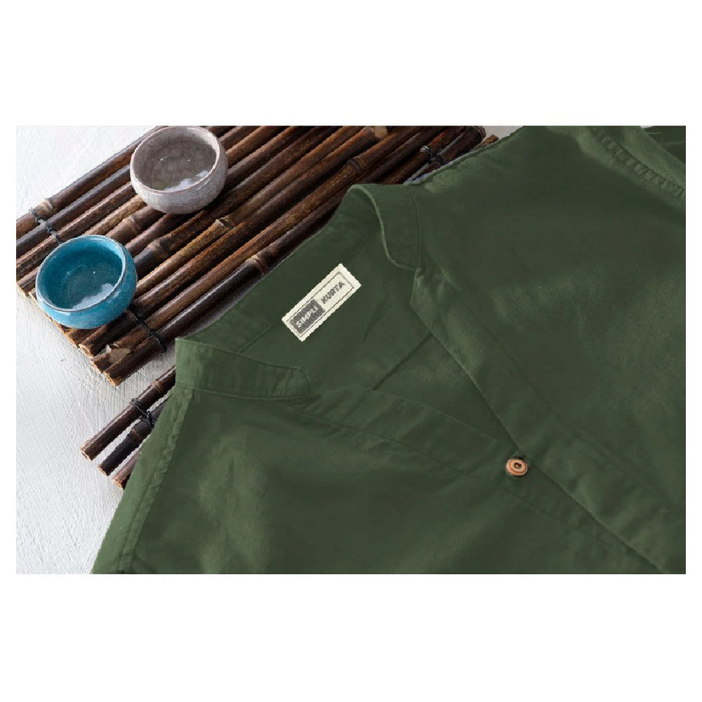 Crafted from breathable, lightweight cotton, this olive green kurta shirt captures the perfect blend of ethnic and modern style. It features a mandarin collar, button-down front, and full sleeves equipped with roll-up tabs for added versatility. With its regular fit, this shirt is ideal for everyday wear, casual outings, travel, or informal events. Machine washable and easy to pair, it’s a wardrobe staple that balances comfort, functionality, and understated style.