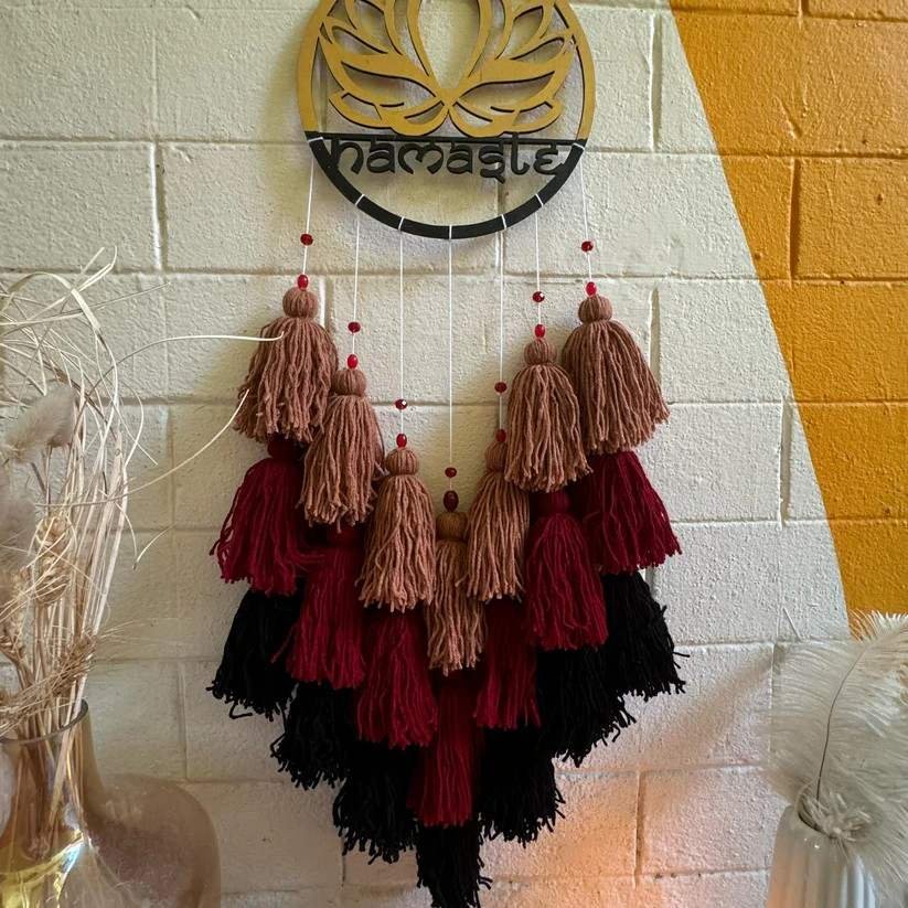 Bring warmth and positive energy to your space with the Namaste Tasseled Dreamcatcher. Made with wooden rings and threads in elegant brown and golden tones, this boho-inspired décor piece adds a subtle yet radiant touch to any room. It’s perfect as a thoughtful gift for yourself or your loved ones on birthdays or for any special occasion.