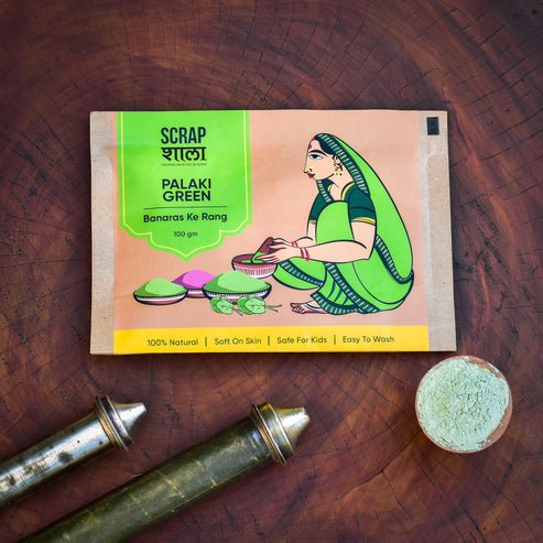 Completely handmade, finely filtered, scented with natural fragrances, the Palaki green gulaal is handcarfted from pure green stain of Spinach and is perfectly soft, skin-friendly and a joy to play with family and friends.