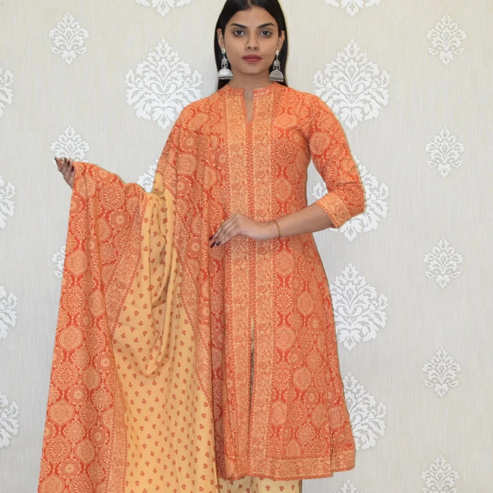Comes as a coordinated suit set: includes the top and matching bottom (and if available, dupatta) for a complete look.