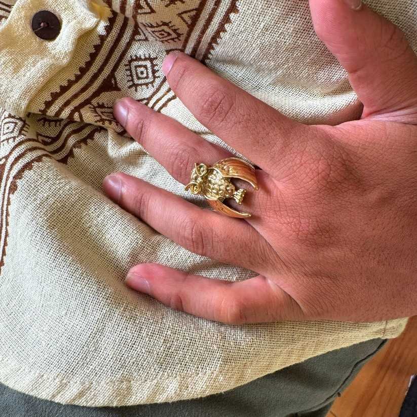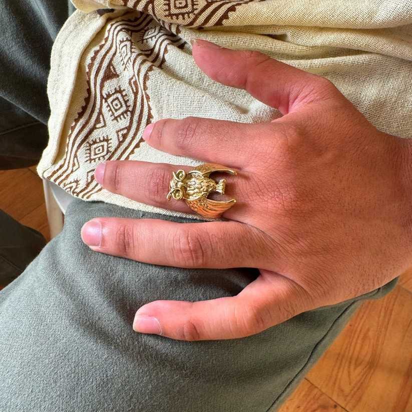 This handcrafted ring is made from pure brass and designed to be adjustable, ensuring a comfortable fit for all sizes. Its intricate detailing highlights the majestic features of the owl, making it a meaningful piece for both men and women.