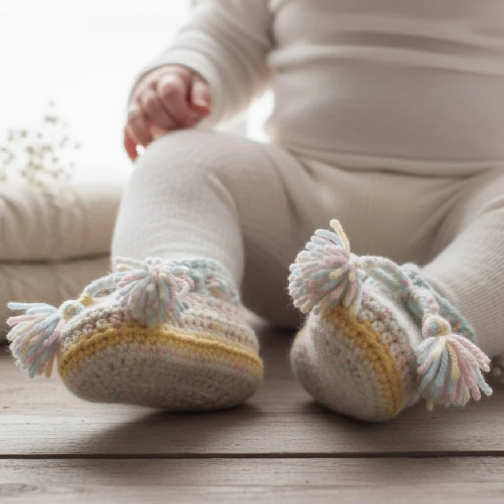 Wrap your baby's feet in the dreamy comfort of our "Pastel Dream" Tassel Booties. Lovingly handmade from the softest, authentic wool, these booties feature a beautiful mix of light blue, pink, and yellow pastel colors.
