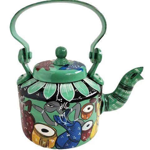 A beautifully handpainted aluminum kettle featuring traditional Pattachitra art by master artisans from West Bengal.